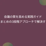 これらを徹底することで、会議の生産性を高め、組織全体のパフォーマンスを向上させることができます。